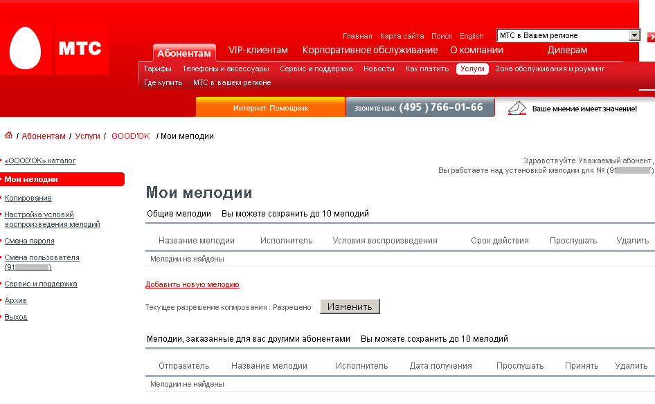 другим абонентам МТС возможности установить себе мелодии, выбранные