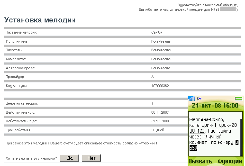 счета абонента будет списана стоимость этой мелодии, а ему на телефон