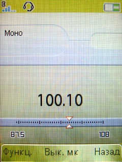 Встроенное FM-радио позволяет запоминать до 9 радиостанций. Присутствует автопоиск каналов. Управлять переключением радиостанций можно только с помощью клавиш на телефоне, так как на гарнитуре клавиши не предусмотрены. Качество приёма в помещении хорошее. Есть возможность слушать радио через динамик телефона (при этом должны быть всё равно подключены наушники, которые играют роль антенны).