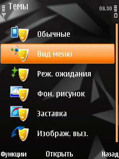 В телефоне предустановленно три, так называемых темы оформления, только вот основная картинка остаётся неизменной, а заменяется лишь цвет полос прокрутки и подсвечивания выбираемых пунктов.
