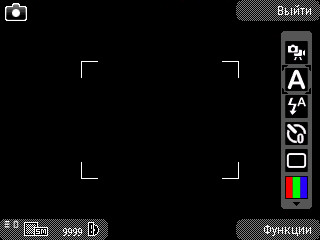 Левый нижний угол интерфейса камеры содержит информацию о заряде аккумулятора, выбранном качестве фото и количестве фотографий, доступных для заполнения памяти телефона (при выбранном разрешении 5 Мп, ничем не "забитая" встроенная память позволяет сделать более 1000 фотографий).