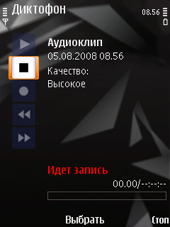 Диктофон позволяет выбирать место для сохранения записи. То есть если вы выберете диск Е с объёмом 16 Гб, длительность записи будет почти безгранична. Также можно выбирать качество записи: для MMS, стандартное и высокое. Запись телефонного разговора активируется из настроек во время соединения. Во время записи подается периодический звуковой сигнал.