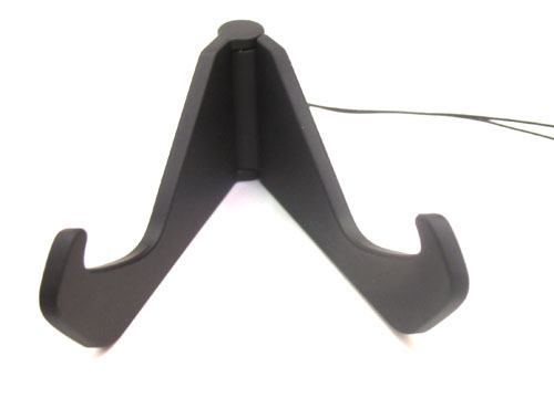Подставка предназначена для установки телефона на стол под наклоном, угол подобран так, чтобы было удобно смотреть видео. Набирать тексты не получится, подставка скользит по столу. Подставка представляет собой раскладывающуюся штучку, в которой сделан вырез для телефона. При раскрытии до нужного угла чувствуется щелчок, это положение оптимально для установки телефона. С помощью шнурка можно подвесить подставку к телефону или чехлу, равно как и стилус-медиатор.