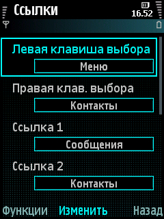 При навигации правая софт-клавиша отвечает за возврат на пункт выше, а левая – либо за «подсказку», либо за меню «Функции». Чтобы вернуться в режим ожидания, нажимаем клавишу сброса.
