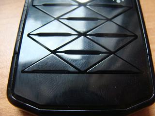 Дизайн устройства – основная его изюминка. Боковые грани, и задняя крышка изготовлены из анодированного металла, приятного на ощупь и передающего холодок рукам. Вся поверхность телефона пронизана ромбиками, придающими моноблоку форму рубина.