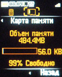 Объём встроенной памяти в нашем телефоне составляет всего 2 Мб. С помощью карты microSD объём памяти можно увеличить до 2 Гб. Слот для карт памяти находится под аккумулятором телефона, таким образом «горячей» замены не предусмотрено.