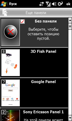 Пожалуй, это самая функциональная панель, не считая стандартного рабочего стола. Именно ею скорее всего будут пользоваться владельцы Xperia, поскольку возможности панели весьма широки. Концепция напоминает рабочий стол Today, отличия в предоставляемых базовых возможностях. Итак, на панели есть место для 10 так называемых блоков, в которые можно помещать различную информацию.