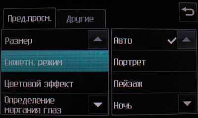 2) Сюжетный режим. Здесь находятся следующие режимы: авто, портрет, пейзаж, ночь, пляж и спорт. Разницы между съемкой портретов в авто и портретном режимах мы не обнаружили, то же самое можно сказать и про пейзажи. Ночной режим характеризуется большой выдержкой, что позволяет получать более светлые фотографии, чем в авто, однако следует использовать стабилизатор для исключения смазанных снимков. Спорт, напротив, уменьшает выдержку и снимок может получиться четким, но темным. Режим Пляж несколько изменяет цветовой баланс фотографии, не более того.