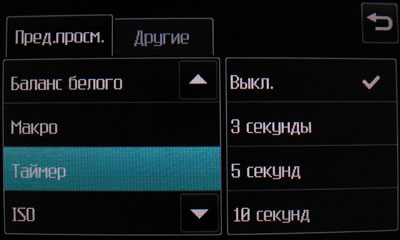 7) Таймер. 3, 5, 10 секунд, либо выключен.