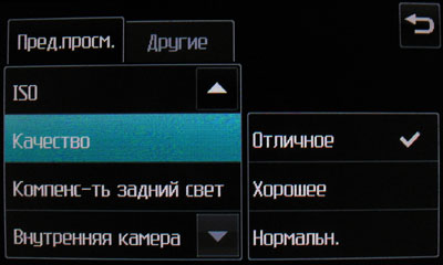Меню настроек вызывается кнопкой, находящейся в левом верхнем углу экрана. Оно состоит из двух вкладок, «Пред. просм.» и «Другие», разделение пунктов между ними не всегда очевидно. Пункты расположены в левой части экрана, а доступные опции для них – в правой. Итак, на первой вкладке есть следующие настройки: