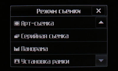 Серийная съемка дает возможность сделать несколько кадров подряд, а затем выбрать лучший их них. Что приятно, разрешение снимков не уменьшается, можно делать серии и из 8-Мп кадров. Панорамный снимок получается склейкой из трех обычных, разрешением примерно в 3 Мп. Склейка осуществляется вручную, при помощи полупрозрачного участка предыдущего кадра. В режиме рамок разрешение снижается до 320х240, что делает этот режим малополезным на практике.