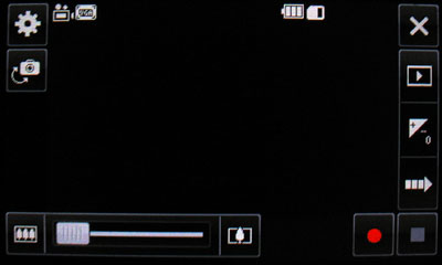 В режим съемки видео камеру можно перевести нажатием кнопки на экране, которая находится слева. Интерфейс и настройки во многом повторяют фоторежим. Так, разрешение меняется от 640х480 до 176х144, также есть два широкоформатных разрешения: 640х384 и 400х240. Качество изображения также выбирается из отличного, хорошего и нормального, дополнительно можно установить ограничение по длительности для MMS, а также разрешить или запретить запись звука. Присутствуют и эффекты, их список тот же. Из всех режимов остались только 2: авто и ночной.