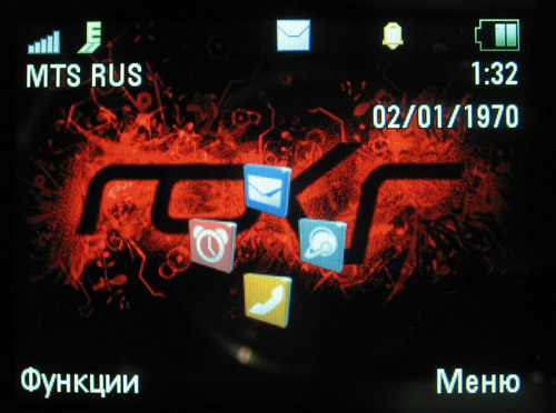 МенюВ режиме ожидания на рабочем столе отображаются 4 ярлыка, соответствующие отклонениям навигационки, получается вызов 4 функций в одно нажатие. Эти ярлыки можно изменить в настройках, всего доступно около 40 функций, включая Java-приложения.