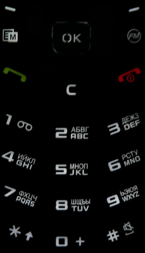 Навигационная клавиша и вписанная в нее кнопка ОК хромированные, навигационная клавиша рельефна. Цифровая клавиатура выполнена из мягкой, ну просто очень мягкой резины.