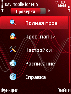– «Проверка», «Карантин», «Обновления», «Анти-спам» и «Информация».