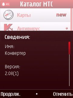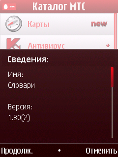 Установка, обновление и удаление всех приложений входящих в «МТС Каталог» осуществляется единообразно – в главном меню каталога выбирают нужное приложение, затем нажимают левую софт-клавишу и в выведенном на экран устройства контекстном меню выбирают необходимое действие. При установке или обновлении приложений будет произведено обращение к Интернет, откуда будет загружено необходимое программное обеспечение.