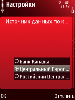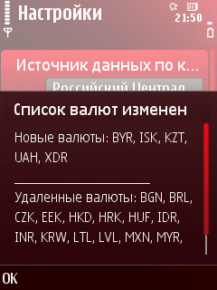 выбрать любую необходимую валюту из списка доступных. Информация о