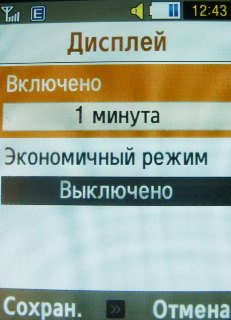Яркость дисплея регулируется в 5 делениях. Длительность подсветки дисплея можно устанавливать на 10 секунд, 30 секунд, 1 минуту, 3 минуты и 10 минут. Экономичный режим отключает подсветку через 5 секунд, 30 секунд, 1 минуту, 3 минуты.