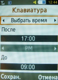 Из опций меню можно задавать работу подсветки клавиатуры в любое время (включая заблокированные клавиши), в ночное время или в любое заданное время.