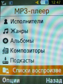 В телефоне установлен mp3-плеер с возможностью синхронизации с Windows Media Player. Воспроизводятся файлы следующих форматов: AAC, eAAC, eAAC+ , WMA.