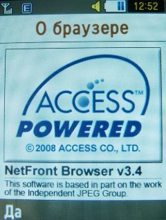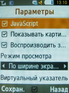 В телефоне предустановлен wap-браузер NetFront 3.4. Основные возможности – масштабирование шрифтов, отображение картинки на весь экран, аналог курсора компьютерной мышки, поддержка JavaScript, окошко навигации на просматриваемой странице, Smart-Fit – отображение всех сайтов в одной колонке.
