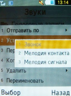 При повторном входе в меню, мы оказываемся на последнем, выбранном ранее пункте, так как телефон постоянно держит в памяти эту позицию и выделяет её в качестве подсказки.
