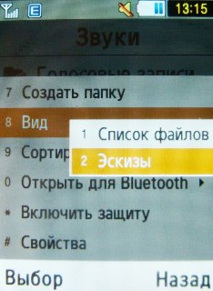 Перемещаться по меню можно при помощи джойстика или цифровых клавиш, сразу же раскрывающих содержимое выбранной папки. Для возврата на один пункт – используется правая софт-клавиша блока на лицевой части устройства, а для мгновенного выхода в режим ожидания – клавиша отмены вызова.