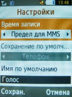 Из настроек, отличных от фото, можно отметить возможность выбора режима записи – обычный, предел для MMS и включение/отключение записи звука.