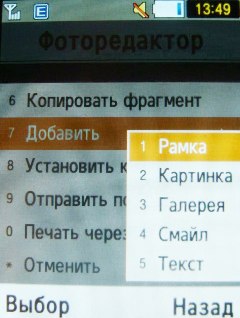 В режим «фото» можно перейти как из меню телефона, так и нажатием джойстика вниз.