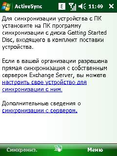 Слот microUSB для подключения кабеля расположен на верхнем торце устройства и прикрыт пластиковой заглушкой. Синхронизация коммуникатора с компьютером сопровождается двумя способами: или Active Sync для обмена информацией о контактах, заметках, календаре и установки софта, или жёсткий диск, известных как Mass Storage, позволяющий получить доступ к памяти телефона за отсутствием драйверов.