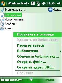 В коммуникаторе для воспроизведения музыки и видео установлены Windows Media Player и потоковый медиа проигрыватель Streaming Player, запуск которых доступен из основного меню.