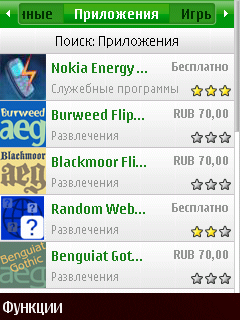 Неприятным моментом, проявившемся при тестировании Ovi Store с настольного компьютера, оказалась не совсем корректная работа ряда элементов его пользовательского интерфейса в браузере Opera (версия 9.63 для Microsoft Windows). В частности, не работали выпадающие списки, служащие для ограничения отображаемого контента. Однако надеемся, что в будущем список поддерживаемых браузеров будет расширен. Каких-либо проблем при работе с Ovi Store через Internet Explorer и Mozilla Firefox выявлено не было.