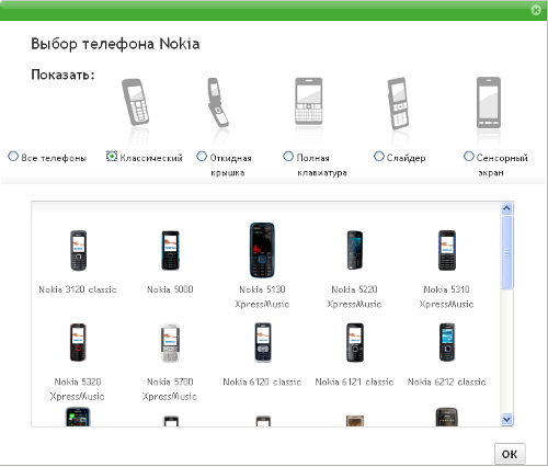 Для повышения удобства использования сервиса и исключения несовместимого контента, пользователь может указать модель своего телефона. Владельцам самых популярных аппаратов от Nokia (по мнению самой Nokia это - Nokia N97, Nokia N95 8GB, Nokia 5800 XPressMusic, Nokia E71 и Nokia 6300) достаточно пролистать список изображений телефонов, отображаемый на главной странице Ovi Store, выбрать свое устройство и нажать кнопку «Это мой мобильный». Владельцам остальных устройств понадобиться щелкнуть по ссылке «Где мой мобильный телефон?», после чего в выведенном на экран диалоговом окне выбрать свое устройство. Естественно, что при последующих обращениях к Ovi Store все введенные настройки будут сохранены.