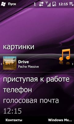 Рабочий стол Today, издавна использующийся в КПК и коммуникаторах, предоставляет широкие возможности для настройки, для него написано огромное количество плагинов на все случаи жизни. Но в последнее время почти никто из производителей не использует стандартный вид этого экрана, предпочитая собственные оболочки (HTC Touch FLO, Acer Shell) или сторонние дополнения (SPB Mobile Shell). Поэтому в Microsoft разработали новый плагин, который теперь является основным. Более того, он занимает весь рабочий стол, поэтому вместе с ним нельзя использовать другие модули. Идеология плагина проста: на экране отображается список основных функций. Для выбранной функции предлагаются основные действия. Список можно пролистывать двумя способами: либо потянув пальцем за полосу выделения, которая расположена в центре экрана, либо потянув вверх или вниз весь список за невыделенный пункт. В любом случае выбранный пункт окажется в центре.