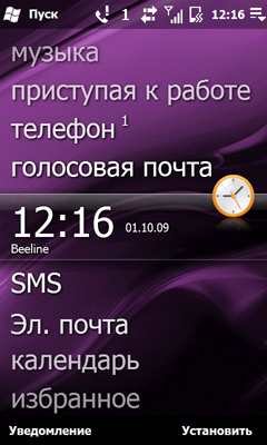 Еще одно новшество операционной системы Windows Mobile 6.5 – новый экран блокировки. Он стал более современным, а главное – более удобным. Заблокировать коммуникатор теперь можно через новое меню Пуск, нажатием левой софт-кнопки. Также можно использовать плагин для рабочего стола, как и прежде. Разблокировка осуществляется жестом: нужно сдвинуть иконку с замочком из центра экрана к краю, в левую или правую сторону. Удобство нового экрана блокировки заключается также и в том, что на этом экране отображаются различные события, например пропущенные вызовы или непрочитанные сообщения. Количество таких событий указывается цифрой рядом с замком на сдвигающейся кнопке. Если не сдвигать ее, а просто нажать, то появится еще один или несколько аналогичных ползунков: с вызовами и/или сообщениями. С их помощью также можно разблокировать коммуникатор, причем сдвиг кнопки вызовов приведет к открытию журнала звонков, где сразу же можно увидеть номер звонившего. Сдвиг кнопки сообщений, по аналогии, откроет папку с входящими сообщениями.