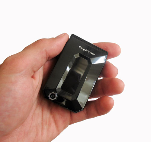 При первом взгляде на телефон можно принять его за пудреницу - настолько он маленький (хотя тонким его никак не назовешь - 73х45х18,2 мм при весе 84 г). Сразу понятно, что носить его будет удобно в любой одежде - от джинсов до куртки.