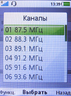 Запускается оно либо из главного меню (в нем радио выделено в отдельный пункт), либо «быстрой» функцией. Качество приема нареканий не вызвало, перемещение по диапазону осуществляется горизонтальными позициями навигационной кнопки с шагом 0,1 МГц. Переключаться между сохраненными каналами можно вертикальными нажатиями «навигационки». Автопоиском можно за несколько секунд настроить 20 станций - больше телефон не позволяет хранить в памяти. Имеется опция RDS - трансляция через радиоканал текстовой информации.