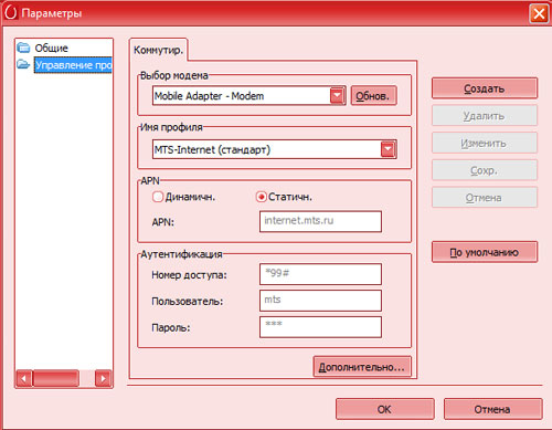 Теперь посмотрим, что нам дает подключение к интернету с телефона по каналу Dial-up: это еще одна возможность встроенного в аппарат МТС 835 ПО. Настройка происходит так же, как и в случае с PC Suite - через мастер установки.