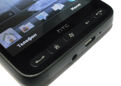 Количество и назначение аппаратных кнопок на лицевой панели соответствует другим современным аппаратам HTC, например Touch2. Имеются следующие кнопки: приема и отбоя, выхода на главную страницу (домик), открытие главного меню и закрытие текущего окна (стрелка назад). Эргономика кнопок лучше, чем у Touch2: клавиши выпуклые, а не плоские, что гораздо удобнее в использовании. Кнопки «домик» и «назад» объединены в одну большую клавишу-качельку. С отсутствием навигационной кнопки придется смириться, она постепенно исчезает не только с коммуникаторов HTC. Другие производители устройств с Windows Mobile также подхватили эту тенденцию. Впрочем, при большом физическом размере экрана прокрутка и выбор элементов пальцами особых сложностей не вызывает. Единственное нарекание к клавиатуре – ее небольшой люфт. Шатается вся пластина с кнопками, к счастью, не очень сильно.