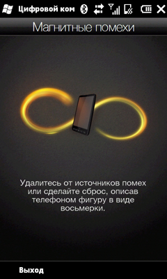 Помимо GPS-чипа, ориентироваться на местности помогает так называемый цифровой компас. При помощи специального датчика коммуникатор укажет направление на север. В зданиях функция работает не очень хорошо из-за наличия электромагнитных помех. Устранить их коммуникатор предлагает при помощи движения корпусом в виде восьмерки.