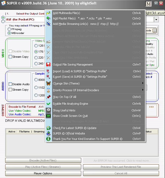 Media Encoder просто. После запуска приложения на экране будет