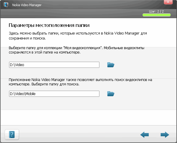 При первом запуске Nokia Video Manager пользователю будет предложено