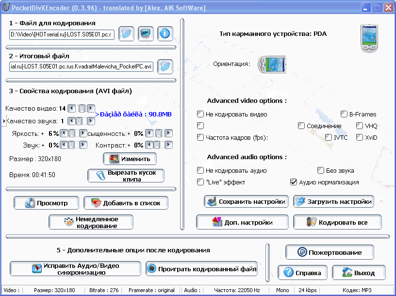 и Windows Media Video (*.wmv, устройства на базе Windows Mobile).