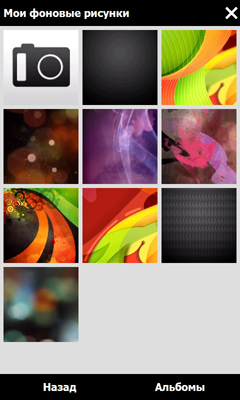 Под строкой календаря находятся три кнопки быстрого запуска. На них можно помещать ярлыки самых нужных программ, а также контакты или ссылки на сайты. Домашнюю страницу можно пролистывать движением пальца снизу вверх. В этом случае часы, дата и иконка будильника уменьшаются в размере и помещаются на небольшую строчку вверху, а пространство экрана занимают 9 кнопок для быстрого запуска, включая те три, которые видны на главной странице всегда. Для ярлыков контактов можно выбрать тип номера для дозвона или отправки SMS, или поместить ссылку на карточку контакта. Можно заполнить сразу несколько ячеек разными номерами одного и того же абонента. Для веб-сайтов иконка меняется на уменьшенную копию страницы. Софт-кнопки на главной странице служат для вызова программы набора номера, о ней чуть позже, и вызова меню. С помощью этого меню можно сменить фоновый рисунок, изменить порядок следования вкладок рабочего стола, удалить ярлыки быстрого запуска, настроить часы и будильник.