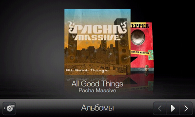В эту вкладку интегрирована программа для проигрывания музыки, ранее известная как HTC Audio Manager. В центре крупно отображается обложка альбома, под ней находится полоса времени с названием исполнителя и композиции. Переход между песнями осуществляется все тем же жестом пальца вверх или вниз, либо кнопками справа от обложки. Пауза и воспроизведение – также кнопкой справа. В меню, появляющемся при нажатии правой софт-кнопки, можно включить случайный порядок и повтор, а также перейти в настройку звука – там находится эквалайзер. Правда, настроить его можно только при подключенной гарнитуре. Эта вкладка также обладает возможностью переключения в альбомный режим. В этом случае выбирать альбомы можно пролистыванием, как и при просмотре фотографий. В альбомном режиме также есть кнопки для управления воспроизведением.