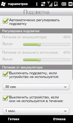 Также можно изменить звук и параметры сигнала вызова, подсветки экрана, безопасности, региональные параметры и многое другое. В одно место собраны настройки для различных программ, требующих обновления из Интернета – погоды, Facebook, Twitter, электронной почты, акций, YouTube и синхронизации времени. Можно установить периодичность обновления или запретить его.