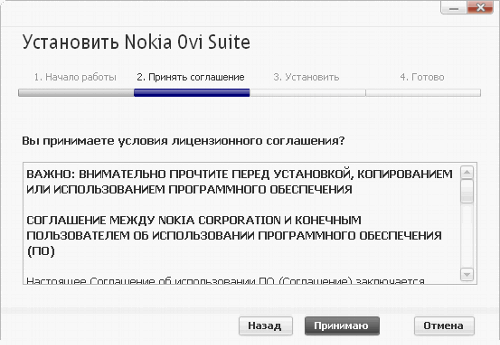 На текущем этапе Nokia PC Suite и Nokia Ovi Suite могут быть установлены на одном компьютере, но одновременно использовать их не следует. Если на компьютере установлены Nokia Ovi Suite 1.x и Nseries Suite, то установка NOS2 приведет к их удалению, а пользовательская информация, содержащаяся в данных программах, будет импортирована в NOS2.