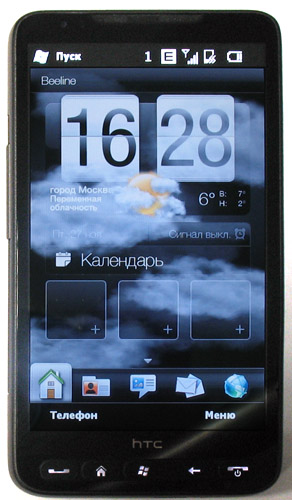 Еще приятнее выглядит HTC Touch HD2, который помимо 1 ГГц процессора обладает 448 Мб оперативной памяти, большущим емкостным дисплеем диагональю 4,3-дюйма и тонким 11 мм корпусом. С обзором этого флагманского продукта можно ознакомиться здесь, а я лишь отмечу, что HD2 отлично подходит для мультимедийных применений (в том числе просмотра высокачественного видео), а его основным минусом могут стать малое время автономной работы, большие габариты и цена под 30 тысяч рублей. Хотя большие габариты – это неизбежная расплата за диагональ дисплея.
