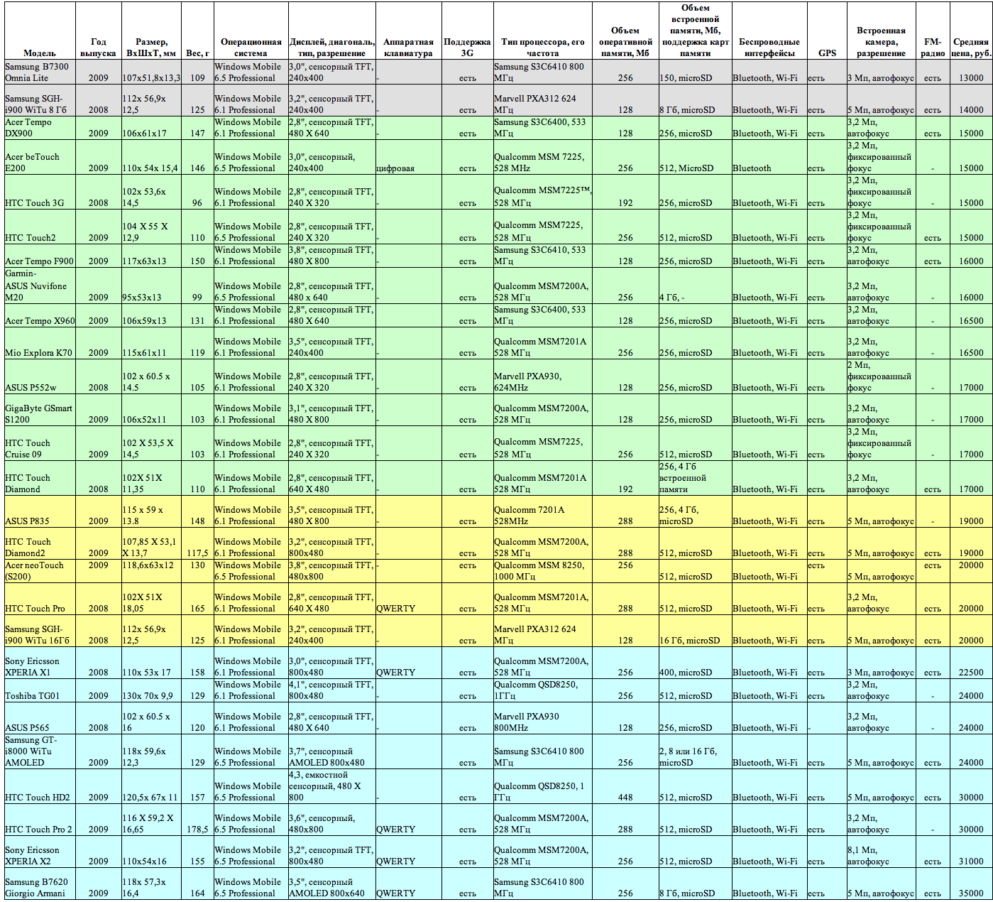 По средней розничной цене рассматриваемый сегмент WM-коммуникаторов условно можно разделить на 3 категории – от 14 до 18 тыс., от 18 до 21 тыс. и свыше 21 тыс. рублей. В определенной мере данное разделение условно – ведь базовые параметры многих устройств похожи, а дизайн вещь сугубо субъективная. Но, подобная разбивка во многом облегчит восприятие информации и сделает ее более наглядной.