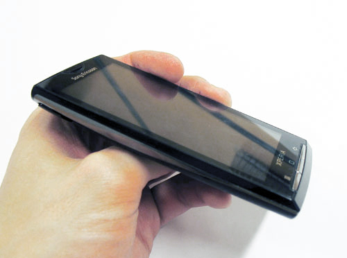 Самое первое, на что обращаешь внимание при первом взгляде на XPERIA X10 – это большой яркий дисплей, который занимает собой почти всю лицевую панель; лишь немного места выделено для речевого динамика и кнопок. На этом фоне даже сам корпус как-то «растворяется», выглядит компактно, и, хотя он вовсе не маленький (119 x 63 x 13 мм, вес смартфона 135 граммов), нет ощущения, что держишь в руках что-то большое. В руке смартфон лежит удобно, не скользит; комфортен он и при разговоре.